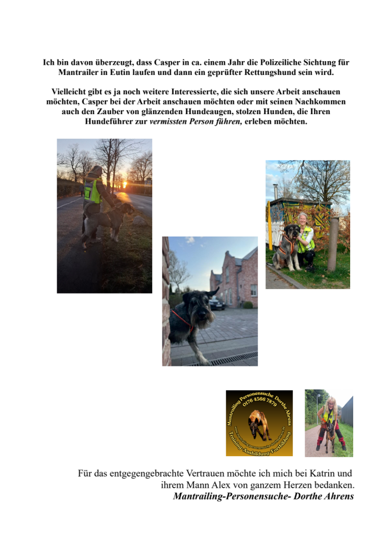 Auch Personensuche genannt - ist eine großartige Auslastung für Hunde und fördert das Miteinander des Mensch-Hund-Teams ungemein.