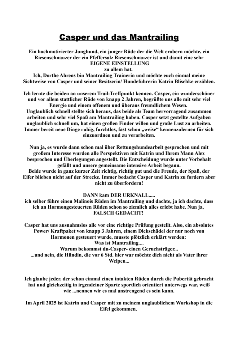 Denn Deine Nase ist nicht in der Lage diese Aufgabe zu bewältigen. Dein Job ist es den Hund lesen zu lernen, was eine wahre Kunst ist.