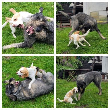 Wenn Casper seinen wilden Wutz bekommt, achtet er sorgsam darauf unseren kleinen Sohn nicht aus Versehen zu takeln.