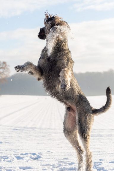 Casper ist ein substanzvoller Rüde, oberer Größe, mit maskulinem Ausdruck. Korrekt getragenes Klappohr, elegante Hals-Nacken-Linie, sehr gute Brusttiefe, korrekte Winkelungen, gute Ober- und Unterlinie. Fester Rücken, fließende, gleichmäßige Bewegung und freundliches, ausgeglichenes Wesen, zutraulich.